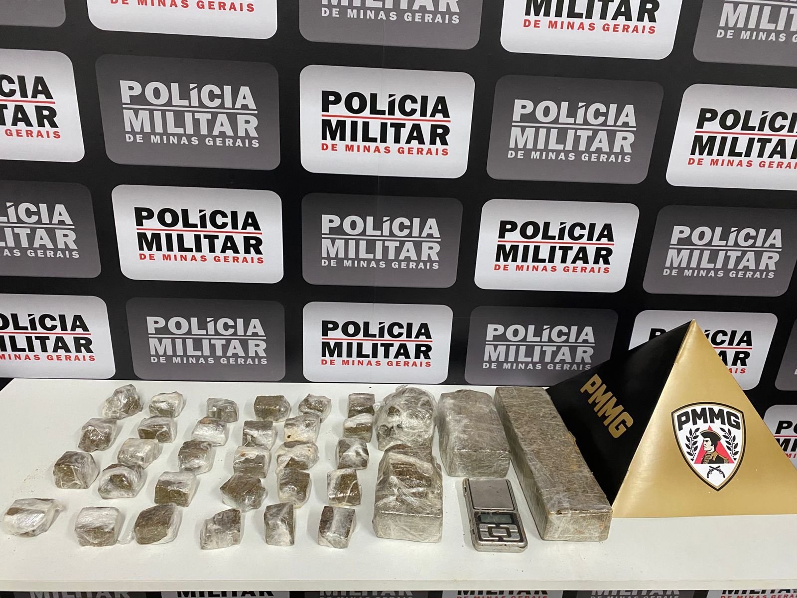 Em buscas na área de mata, foram encontrados e apreendidos 29 tabletes e 04 barras de substância análoga à maconha, além de uma balança de precisão. O material foi encaminhado à Delegacia de Polícia Civil para as providências de polícia judiciária. As equipes policiais seguem em diligências com o objetivo de localizar os envolvidos e dar continuidade às investigações.