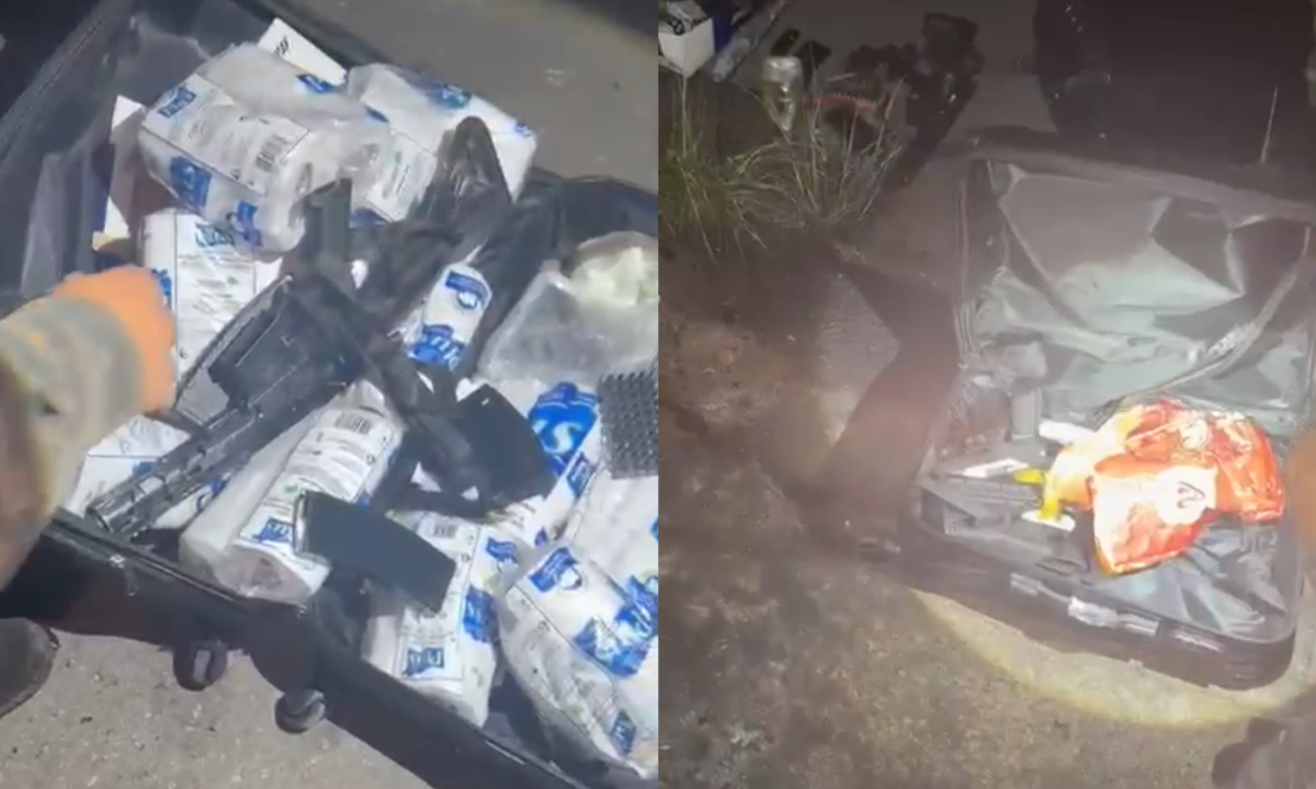 No interior do veículo, as equipes localizaram: