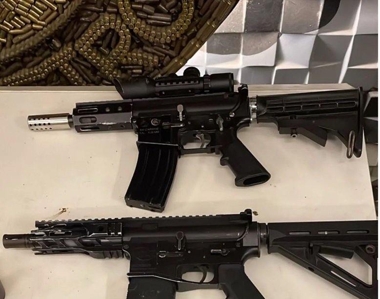 - 02 Pistolas (calibre 9 mm) e um revólver;