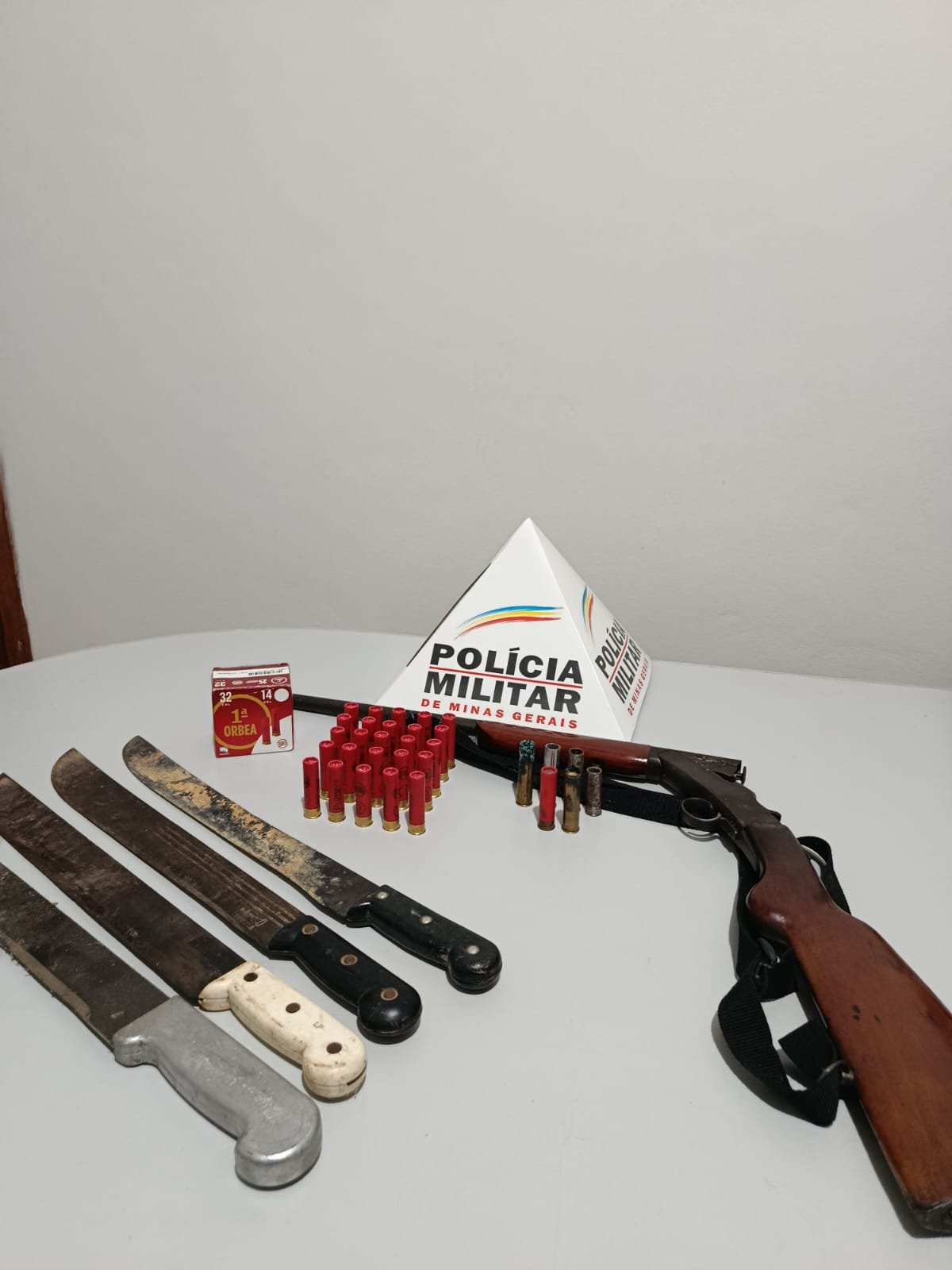 Os militares deslocaram-se até a residência do suspeito, onde foi realizada a abordagem e dada voz de prisão. Durante buscas no interior do imóvel, foi localizada, debaixo da cama do autor, uma espingarda adaptada para o calibre .32, além de uma caixa contendo diversas munições do mesmo calibre e alguns cartuchos deflagrados.