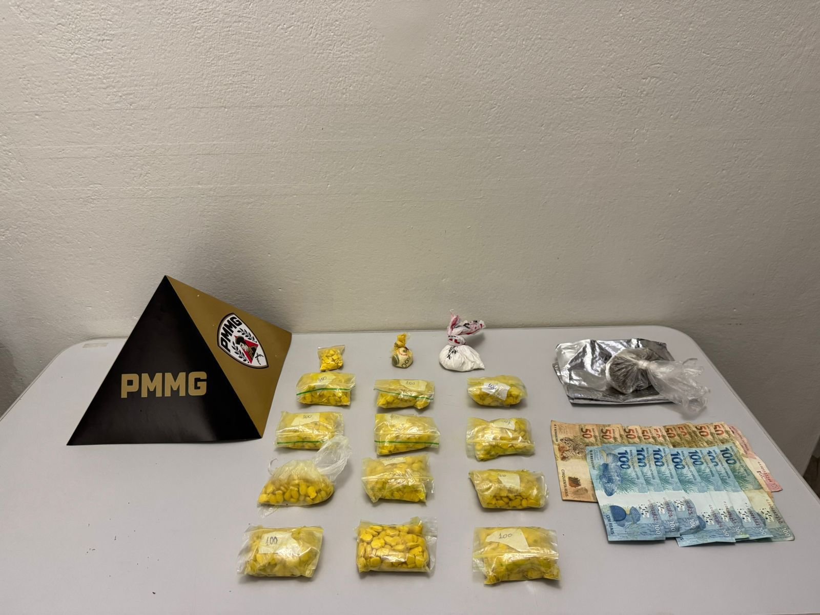 Durante a ação, foram apreendidos 1.115 comprimidos de ecstasy, uma porção de ecstasy em pó, duas porções grandes de cocaína, uma porção de maconha e R$ 1.310,00 em dinheiro.